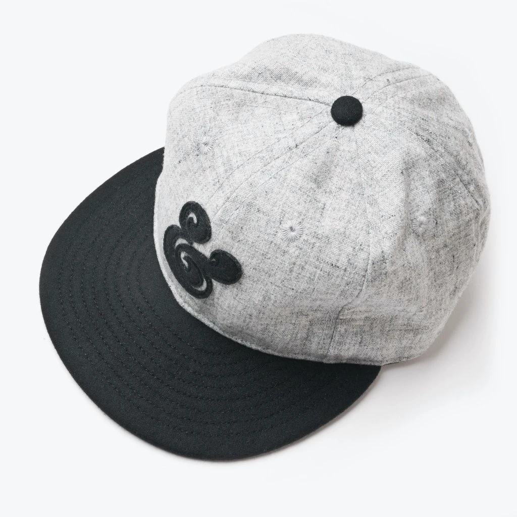 Topi basebal dengan gaya klasik, terbuat dari wol ringan dengan tali kulit yang bisa disesuaikan.